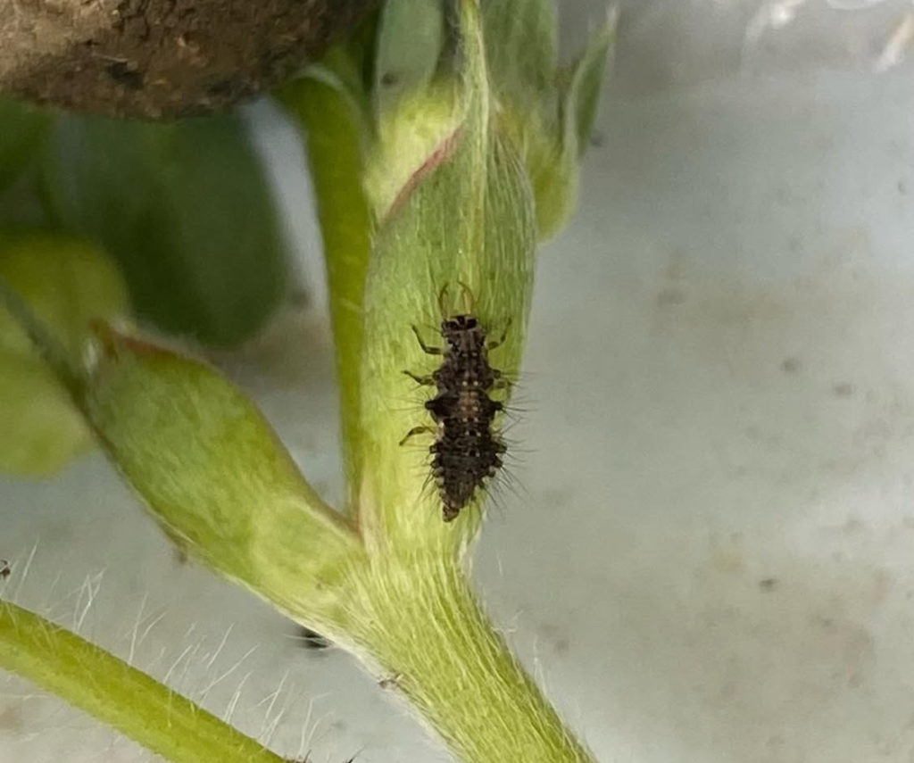 夏にイチゴの苗を育てる圃場 ここではイチゴの苗の上で色んなテントウムシを見つけることが出来て ナナホシテントウの生息エリア、ヒメカメノコテントウの生息エリア、… -