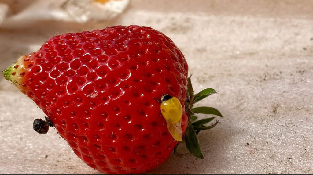 頭を左右に振りながら歩くまるで目が見えておらず触覚だけで何かを探している感じ その探している何か、がアブラムシであることを私は最近知って 見た目の先入観で苺の… -