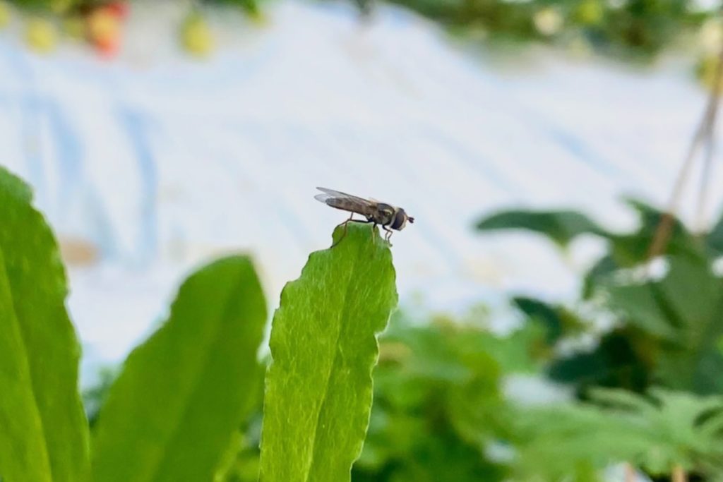 イチゴと相性抜群ヒラタアブ